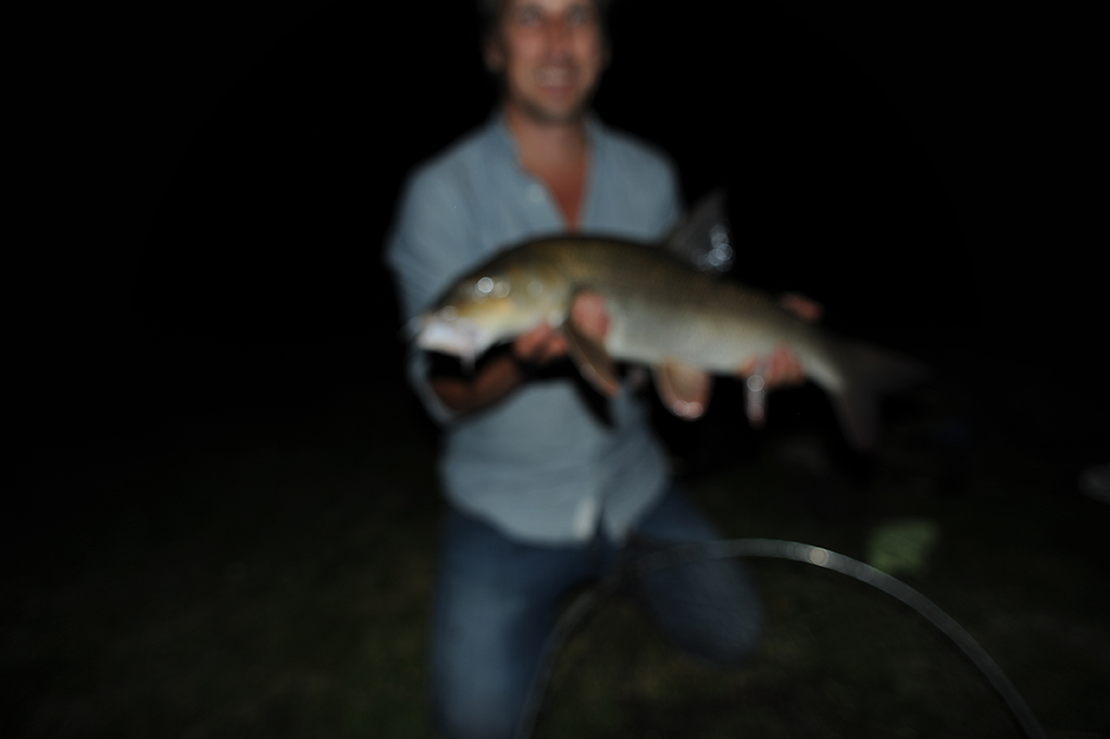A day on the Thames with Steve is a whole experience, the secret places that you visit, the fishing, the lunch, conversation and hopefully a fish or two. Our afternoon was a lazy one and I had a few perch but as the afternoon faded Steve offered to take me to a private stretch of water on the Kennet where the chance of a barbel was possible. As the light faded we turned up on the lawn of a private house and running along the side of the garden was the river Kennet, it was warm and the air quite still, there was a sniff of barbel in the air.
